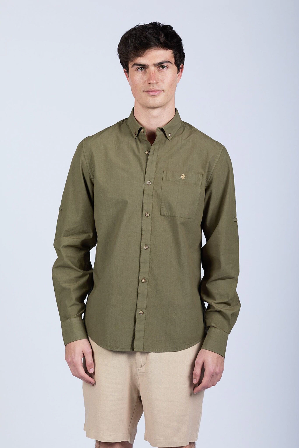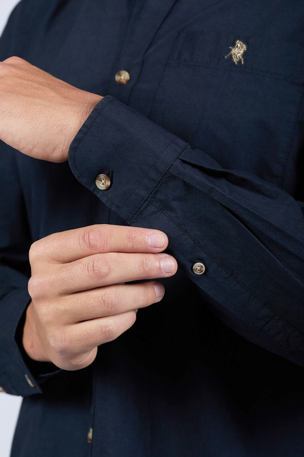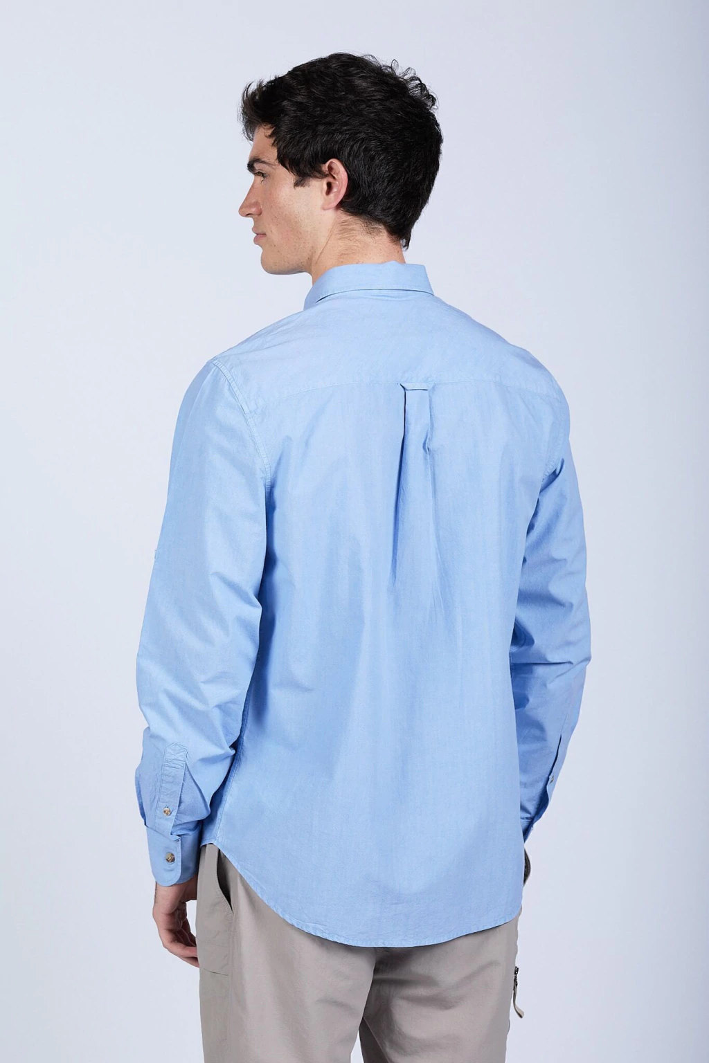 Camisa manga larga confeccionada en 100% algodón y teñida en prenda para lograr un efecto lavado que le da un look único y auténtico. Incluye logo bordado a tono, botones de carey y traba interna con botón para arremangar, sumando practicidad y estilo. Su calce regular, con dos pinzas abiertas en la espalda, brinda un ajuste más amplio que asegura comodidad y libertad de movimiento. Una prenda versátil, perfecta para un look casual y relajado.