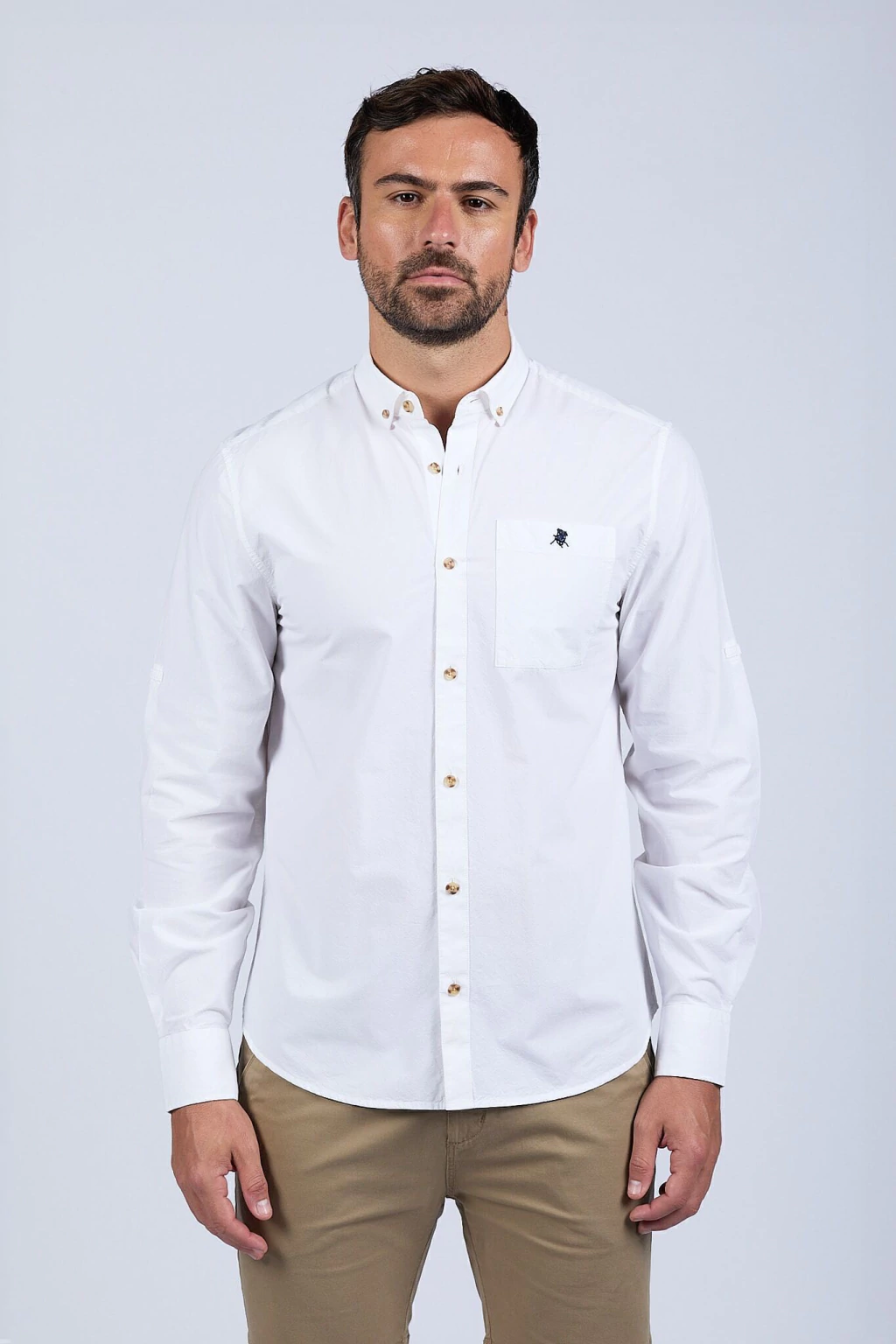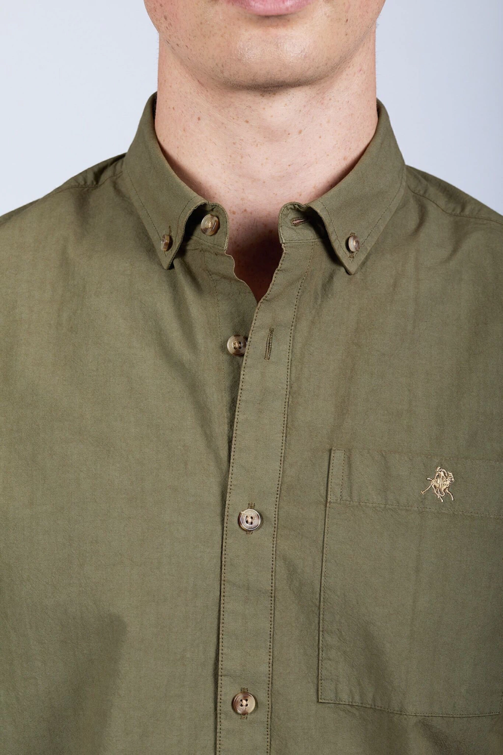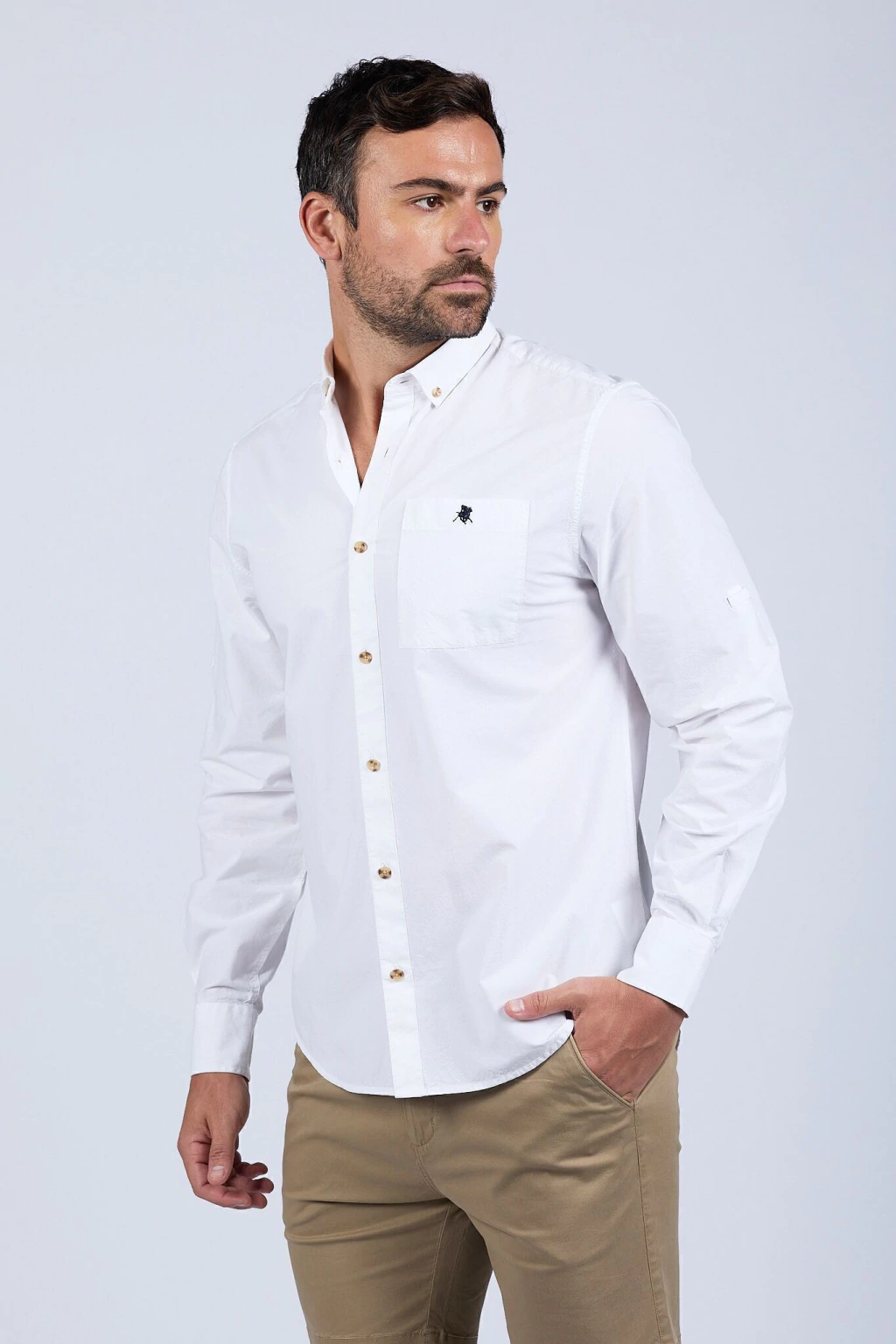 Camisa manga larga confeccionada en 100% algodón y teñida en prenda para lograr un efecto lavado que le da un look único y auténtico. Incluye logo bordado a tono, botones de carey y traba interna con botón para arremangar, sumando practicidad y estilo. Su calce regular, con dos pinzas abiertas en la espalda, brinda un ajuste más amplio que asegura comodidad y libertad de movimiento. Una prenda versátil, perfecta para un look casual y relajado.