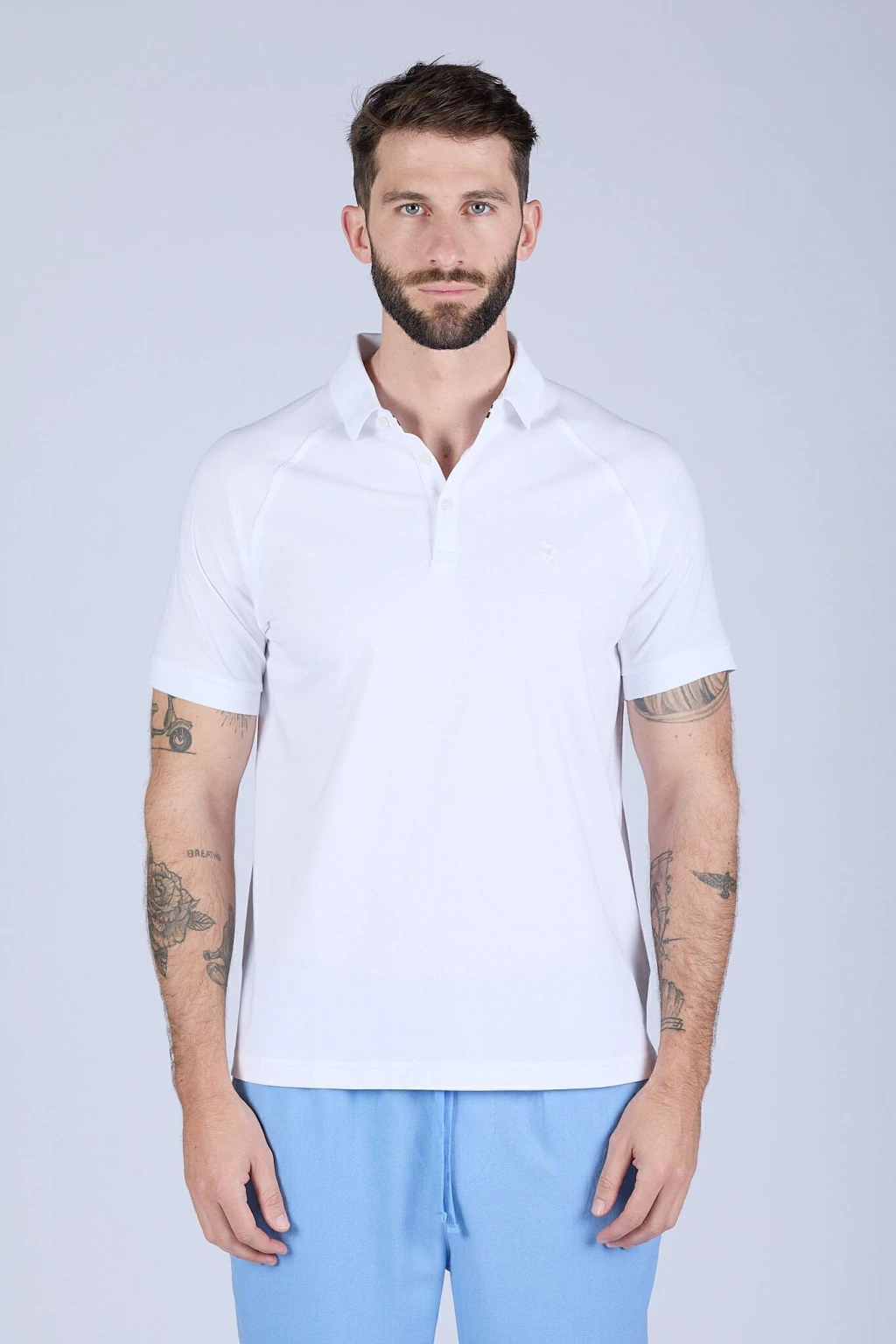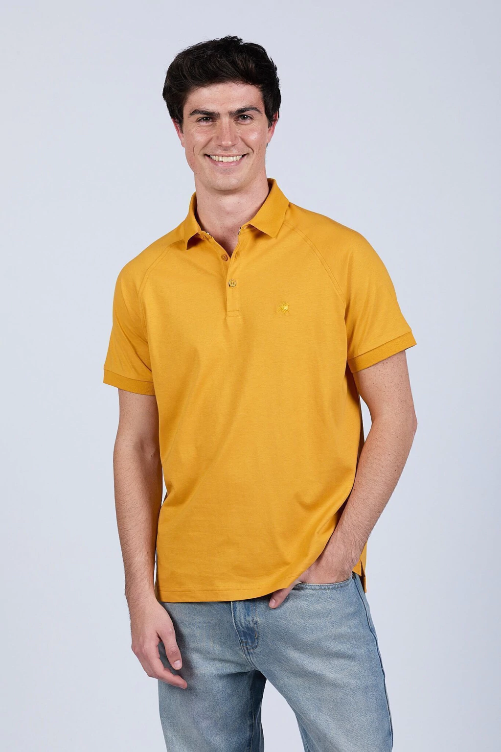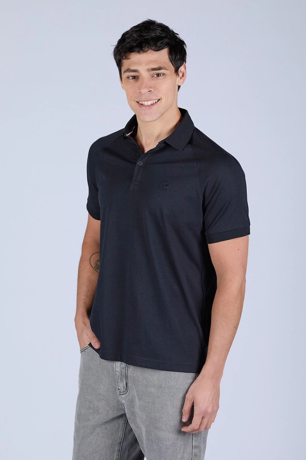 Chomba polo de hombre confeccionada en jersey 100% algodón peruano, reconocida por su suavidad y durabilidad. De calce regular para mayor comodidad, se distingue por su diseño con mangas raglan y costura visible, que aportan un toque moderno. Logo bordado a tono. Esta chomba es carbon neutral: fue producida en armonía con el medioambiente.