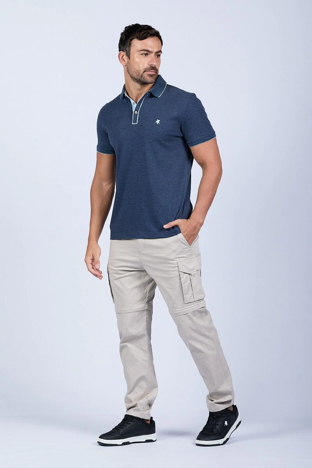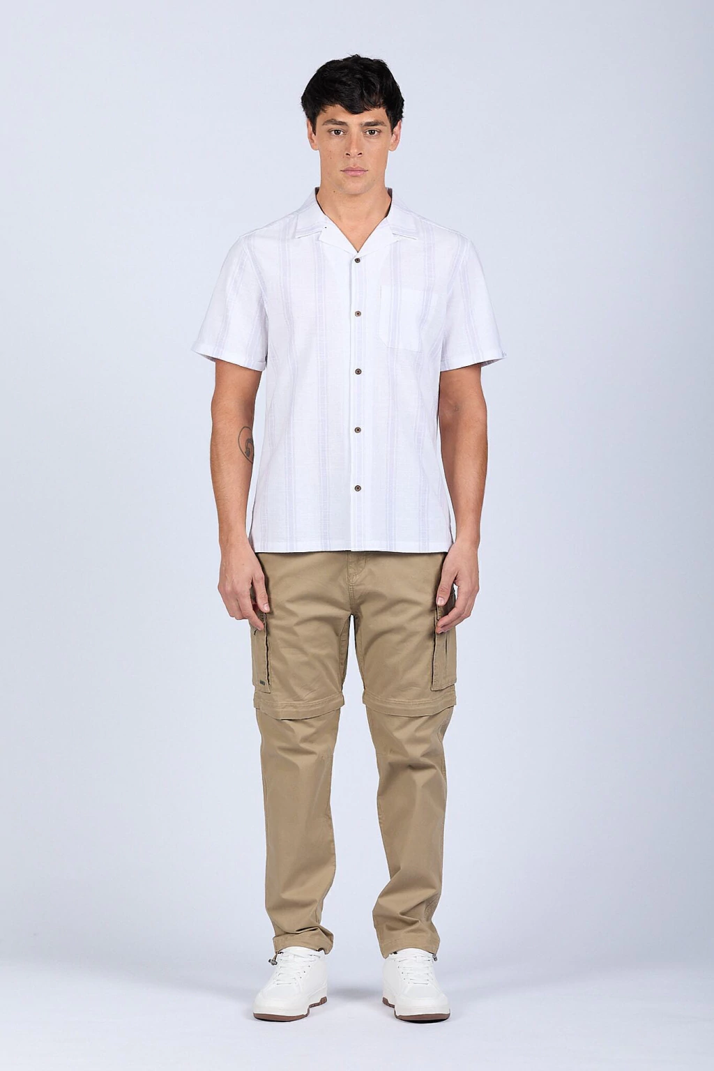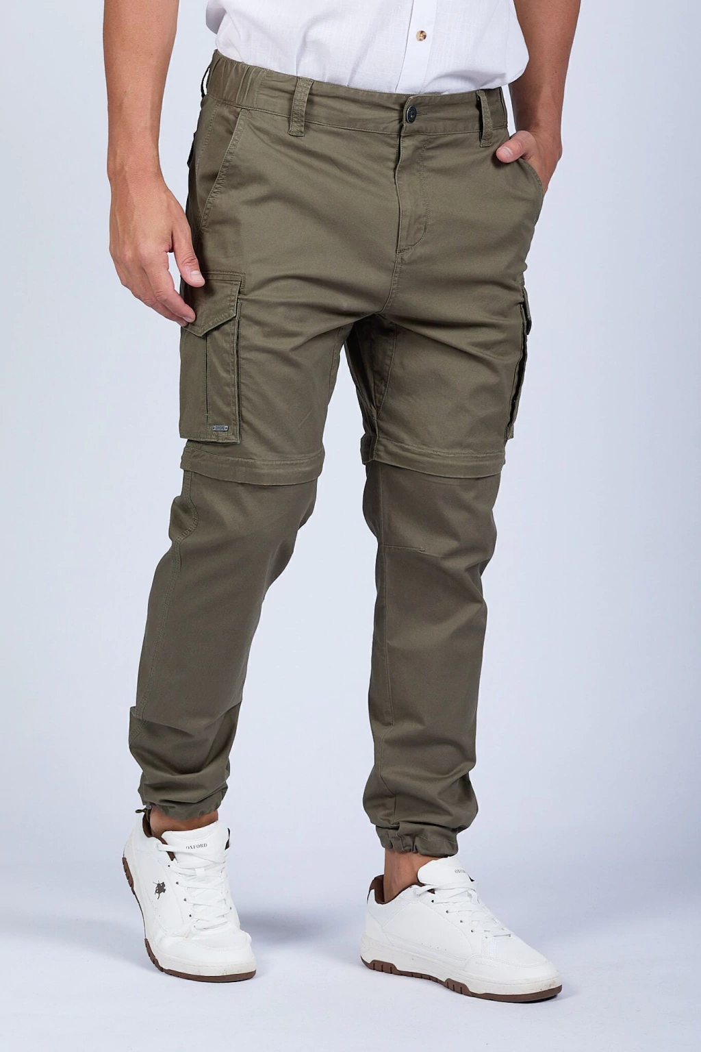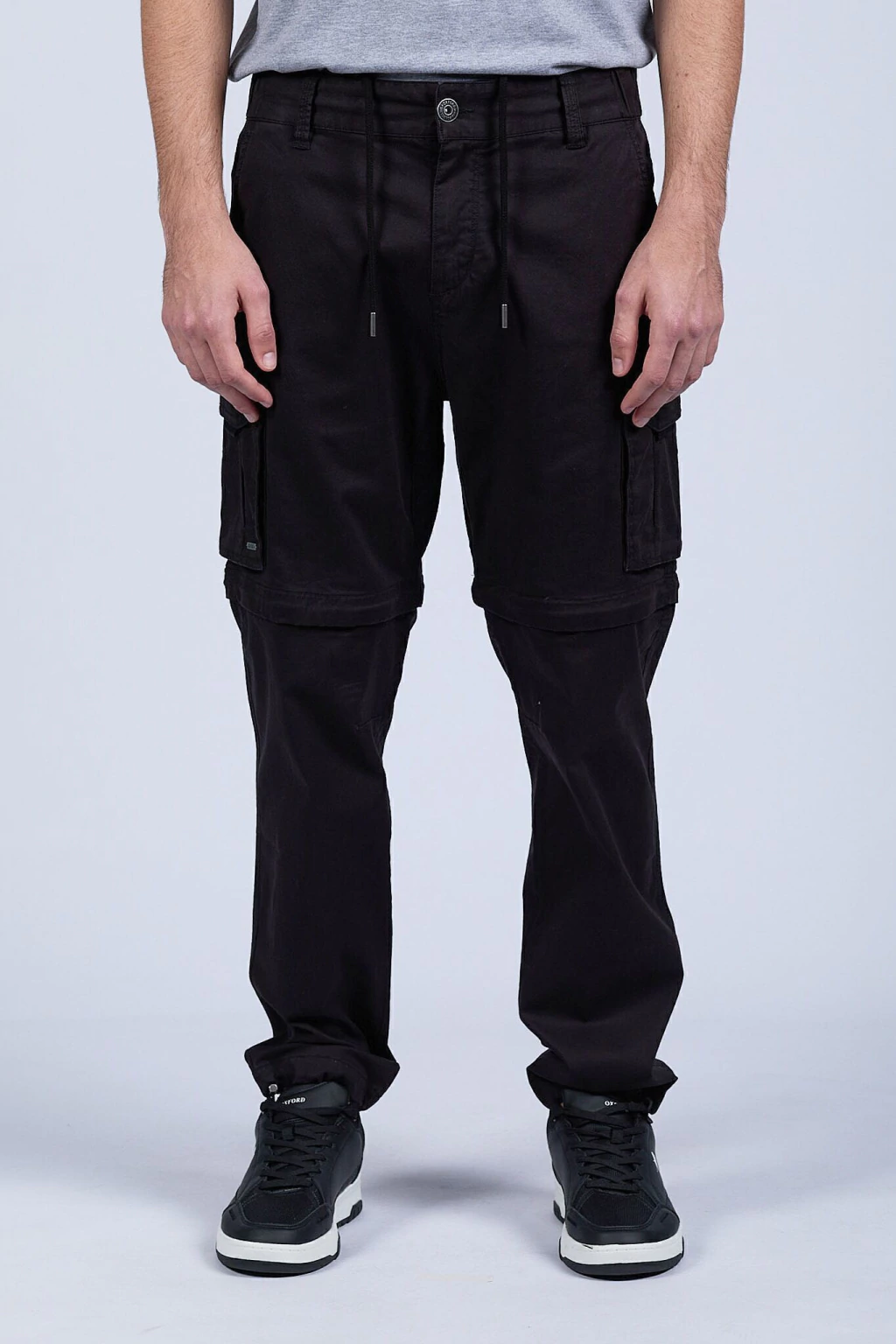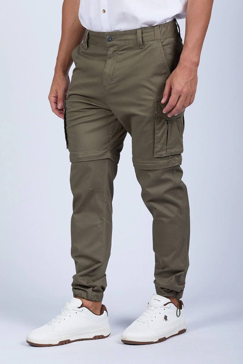 Pantalón cargo con piernas desmontables. Dos pantalones en uno. Cintura ajustable con cordón y elástico. Ajustables en tobillo. Bolsillos delanteros, traseros y laterales. Nunca vas a terminar de descubrir cuántos bolsillos tiene. Realizado en gabardina 100% algodón.