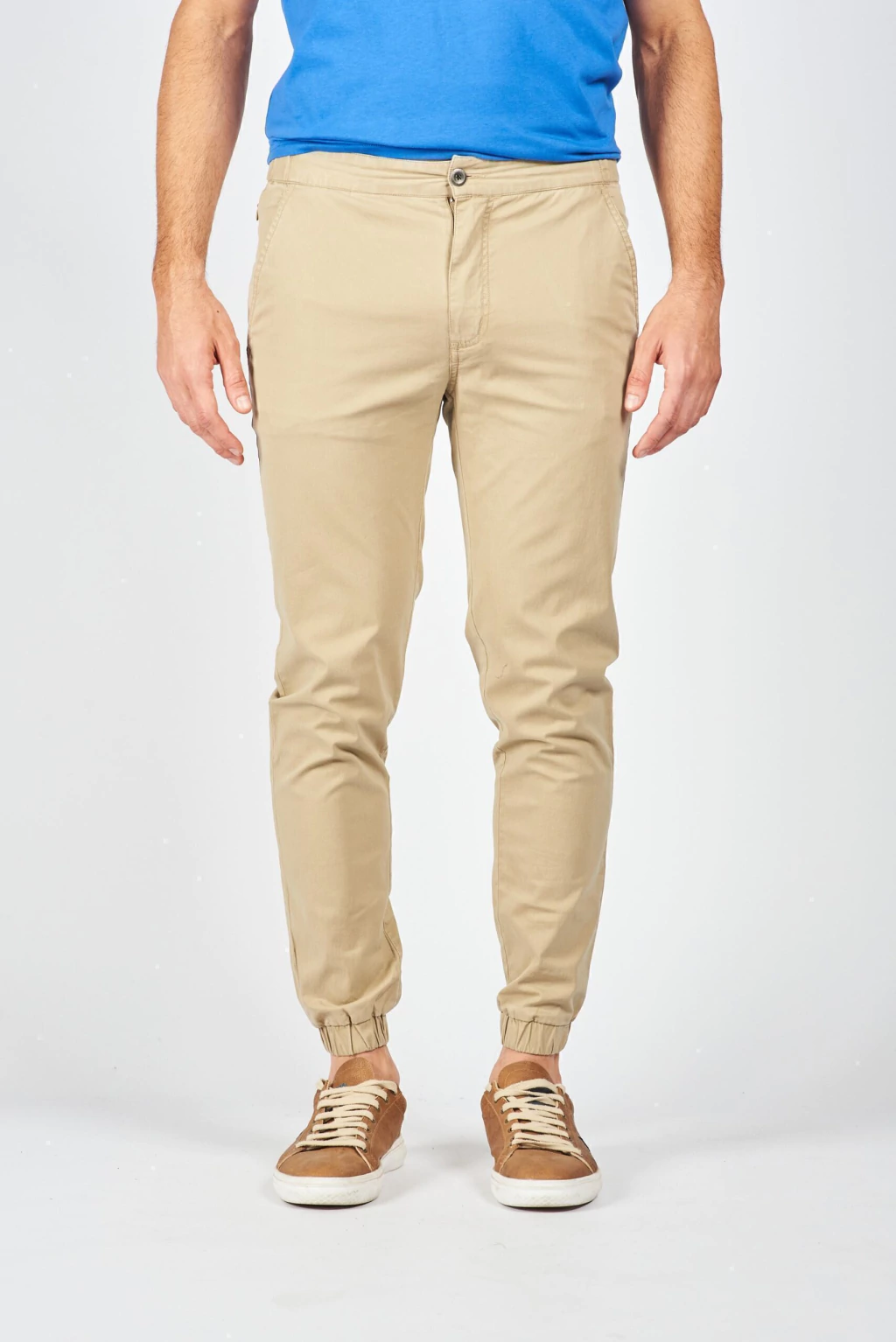 Pantalón chino con cintura y tobillos elastizados. Veracruz fue creado para darle un estilo moderno al pantaón chino clásico. Calce slim fit. Bolsillos traseros con tapa.Realizado en algodón elastizado con acabado de piel de durazno, logrando un tacto suave. Composición: 97% algodón 3% elastano.
