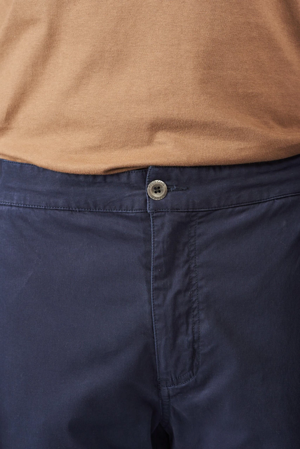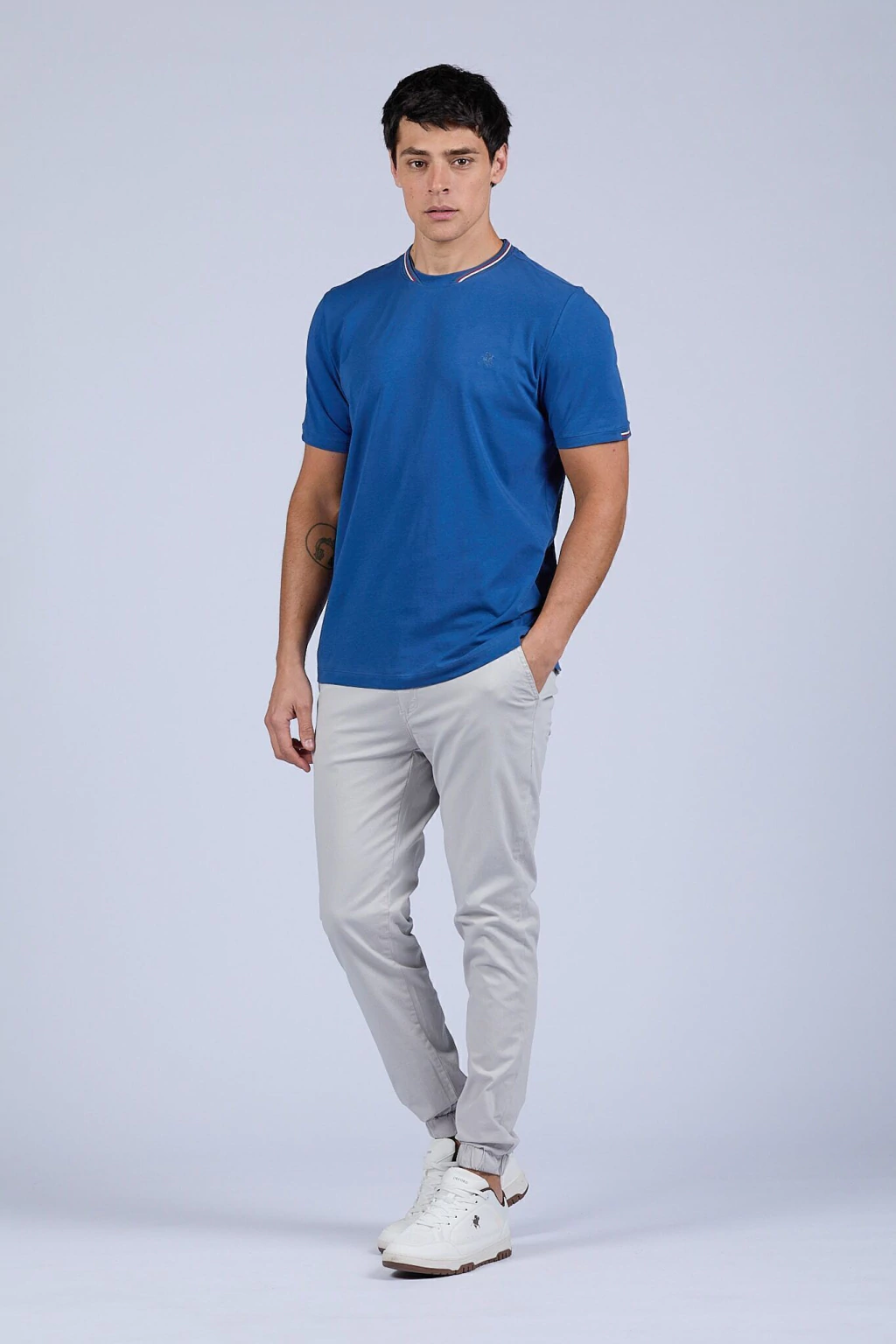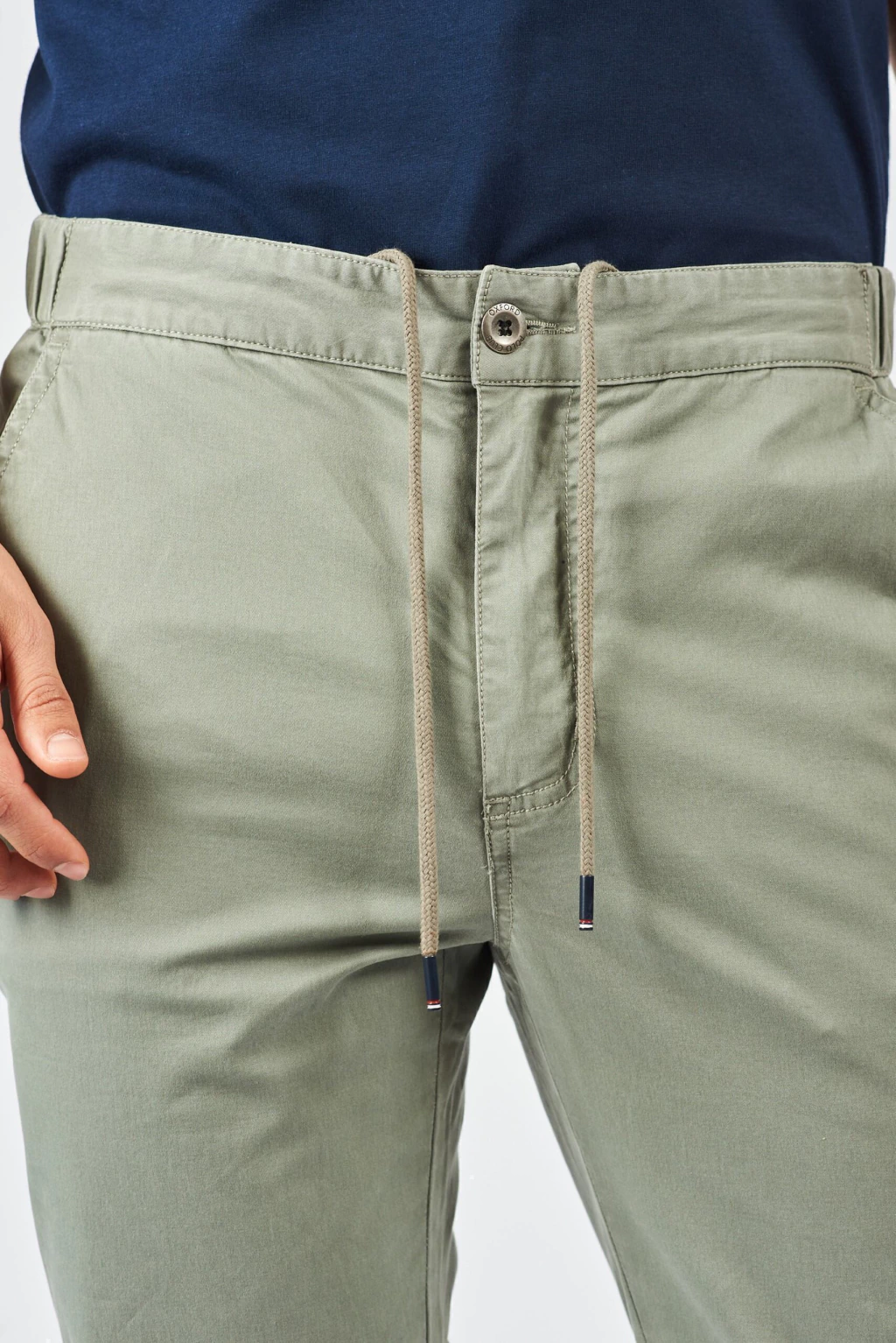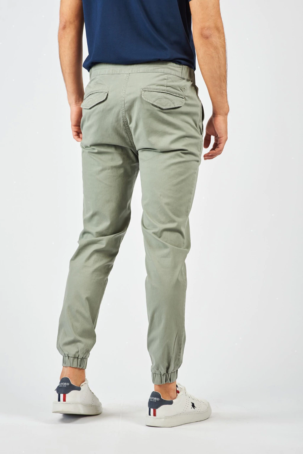 Pantalón chino con cintura y tobillos elastizados. Veracruz fue creado para darle un estilo moderno al pantaón chino clásico. Calce slim fit. Bolsillos traseros con tapa.Realizado en algodón elastizado con acabado de piel de durazno, logrando un tacto suave. Composición: 97% algodón 3% elastano.